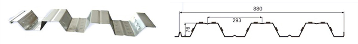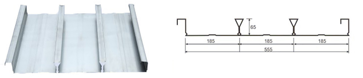 3:压型板表面压纹使楼承板与混凝土之间产生最大的结合力,使二者形成整体,配以加劲肋,使楼承板系统具有高强承载力,